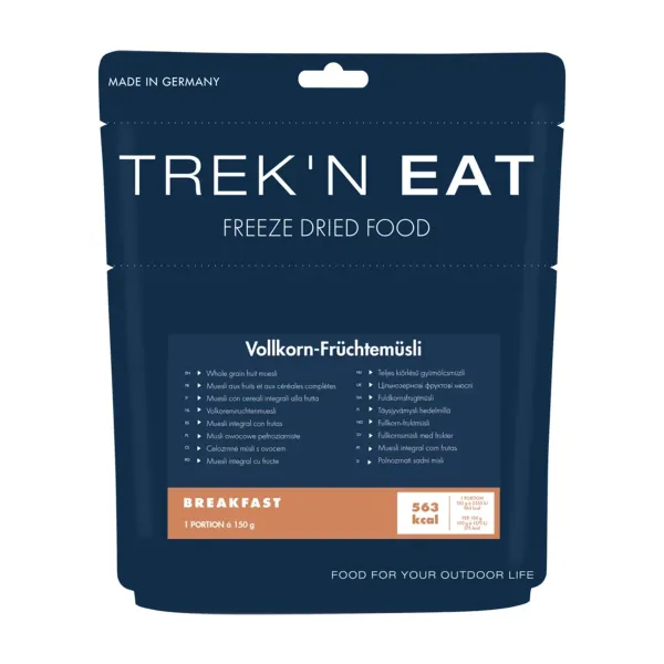Das Vollkornmüsli von Trek'n Eat ist ein ideales Frühstück für Outdoor-Enthusiasten, die eine nahrhafte, praktische und schmackhafte Mahlzeit suchen. Diese Mischung vereint Vollkorngetreide, Trockenfrüchte und rote Beeren für eine ausgewogene Versorgung mit Ballaststoffen, Vitaminen und lang anhaltender Energie.